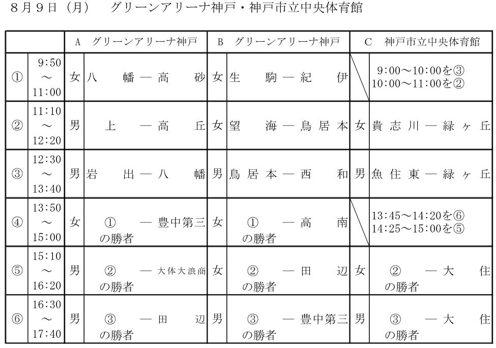 | 8月9日(月)グリーンアリーナ神戸・神戸市立中央体育館 ![]() |