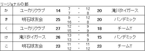 優勝 : 滝川タイガース 準優勝 : ユーカリクラブ 3位 : 明石球友会